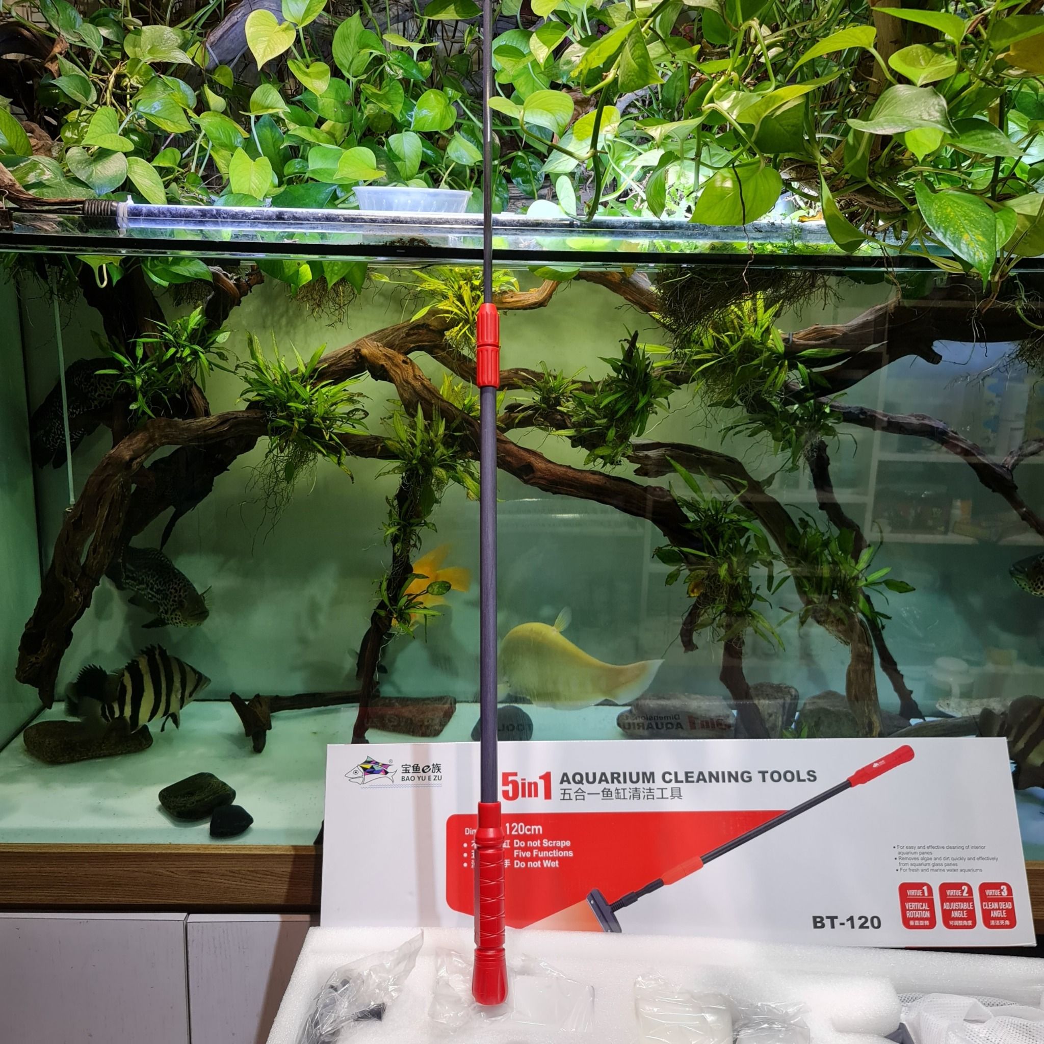 Bộ dụng cụ vệ sinh bể cá đa năng 5 trong 1 của Baoyu đang là sản phẩm được ưa chuộng nhất hiện nay cho công việc vệ sinh bảo trì bể cá. Sản phẩm có thiết kế tiện dụng, kết cấu bền chắc, tích hợp đầy đủ các công cụ cần thiết để vệ sinh một bể cá cảnh.